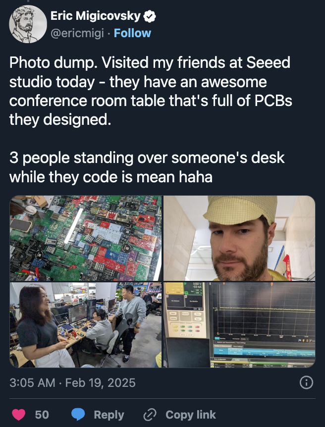 This is great but not even the best part - it’s the speed at which business is done. I’ve been in meetings where we realize that we need more information or an alternative supplier for a part, then within 10 minutes we have that new person on a call or chatting with us over WeChat, and later that day we have an answer to our question. This speed simply does not exist with Western companies. For example, I’ve been waiting for 3 weeks to get 100 samples from a chip company. The shipment has been tied up in various stages of bureaucratic SNAFUs that are carried out over email, across timezones, each with multi-day resolutions (first we needed a phone number for the shipping, then we needed an import number…etc etc). Another example, I asked 8 days ago for a quote on a part….still waiting.