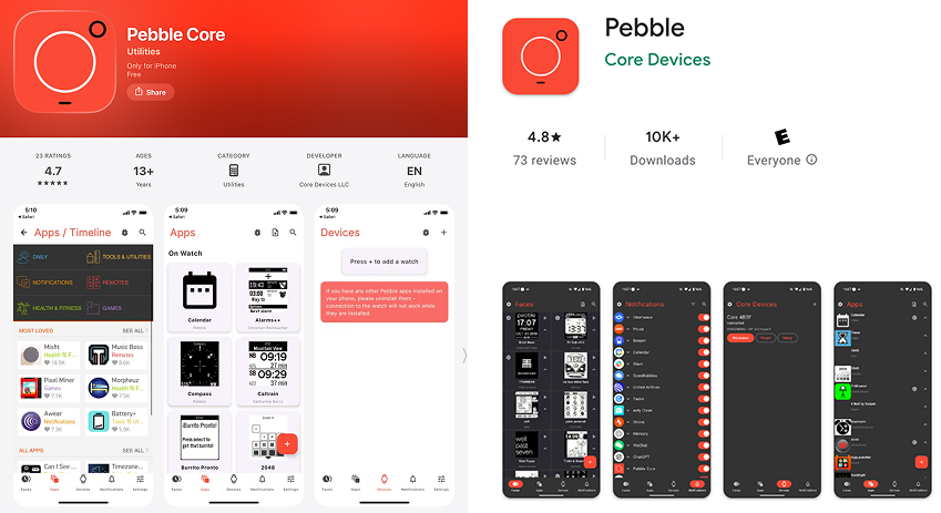 Last month, we published the brand new Pebble app to the iOS App Store and Android Play Store. It works with all Pebbles, including OG Kickstarter Pebble, Pebble Steel, Pebble Time, Pebble Time Round, Pebble 2, Pebble 2 Duo and Pebble Time 2.